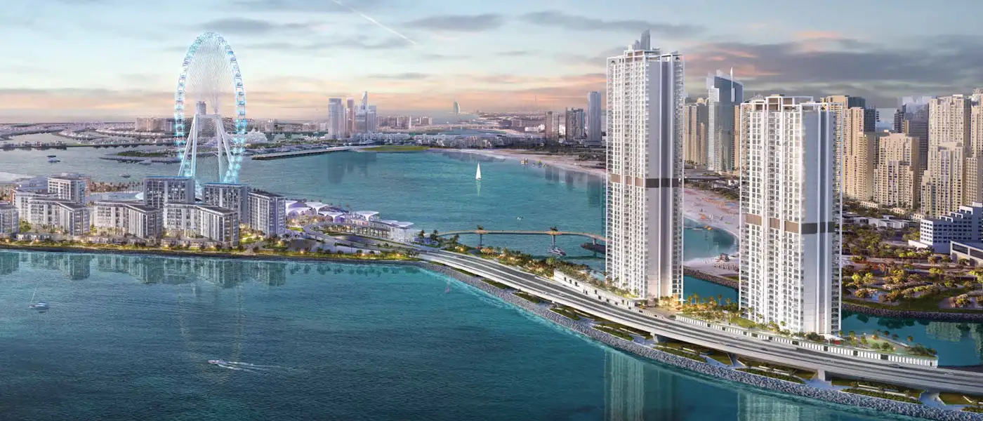 Meraas Bluewaters Bay At Bluewaters Island Dubai. Meraas Bluewaters Bay is a new high-rise development that offers a collection of 1 to 4-bedroom waterfront apartments and penthouses at Bluewaters Island, Dubai. The amazing high-rise towers architecture i.